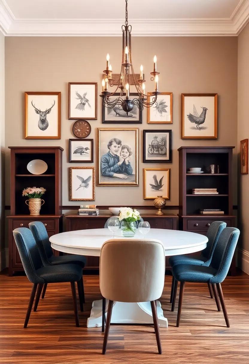 To enhance the aesthetic, curate a gallery wall that features framed vintage art and family heirlooms. This will serve as a gorgeous backdrop for meals and gatherings, inviting guests to share their own stories. You can mix and match: