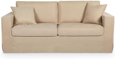 However, while the sofa’s design is cozy with its soft linen fabric and fluffy feel, there are some drawbacks to consider. The assembly may require about 60 minutes, which could be a hassle for some users. The weight capacity of 250 lbs per seat might pose limitations for larger individuals or when accommodating multiple guests. Additionally, the backrest is removable, but the cushions aren’t, which may affect ease of cleaning. this piece delivers both functionality and comfort, making it a worthwhile addition to various living spaces, from a guest room to a modern living room setup.