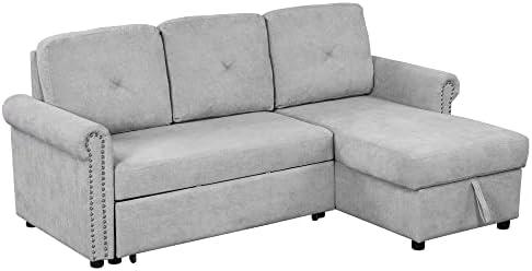 Modern Upholstered Corner Sofa Bed with Storage and Pull-Out Features