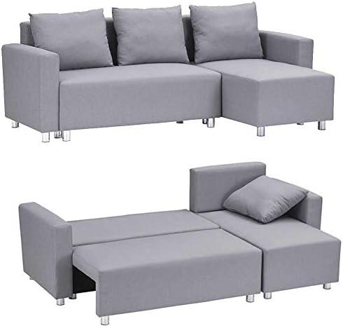 L-Shape Convertible Sofa with Pull-Out Bed and Storage Chaise