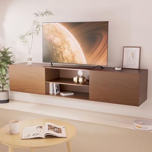 This robust television stand is crafted from high-grade MDF and PB engineered wood, showcasing a dark walnut finish that adds a touch of elegance to your living space. Designed to accommodate TVs ranging from 65 to over 75 inches, it features soft-close door hinges for a seamless, child-friendly use. Additional elements, like two adjustable shelves and a hidden cable management system, ensure your media devices remain organized and easily accessible. The mid-century modern design blends rustic charm with contemporary functionality, making it suitable for a variety of interior styles.