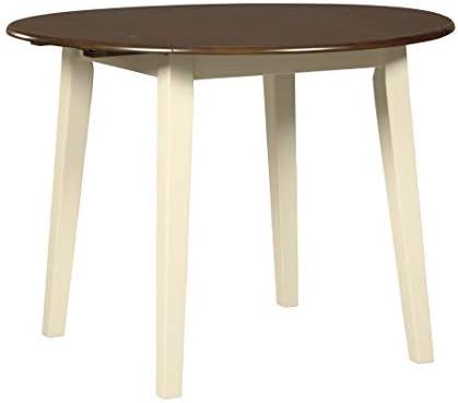 Signature Design by Ashley Woodanville Cottage 40″ Round Drop ​Leaf Dining Table, Cream ​& Brown