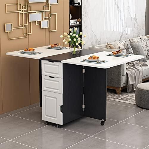 Folding Dining Table, Wood Rectangle Multifunctional⁢ Dinner Table with Drawer Storage Racks,​ Space Saving Kitchen Table Dining Room Table for⁤ Small Apartment