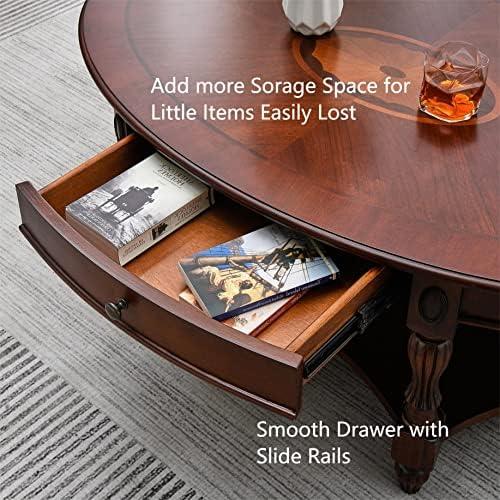 We find this coffee table to be a remarkable addition to any living room setting, blending traditional elegance with modern functionality. The stunning glossy cherry wood grain finish instantly elevates our living space, offering an aesthetic charm that grabs attention and sparks conversation. Designed with a classic Victorian style, the sculptured legs and the oval shape make it not only visually pleasing but also a safe choice for homes with children, eliminating the sharp corners of conventional rectangular tables. We appreciate how the rich cherry walnut color enhances the ambiance, making it a versatile piece that complements various decor styles, from vintage to contemporary.