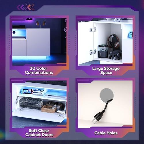 The sleek, minimalist design adds a touch of elegance to our decor, seamlessly blending with various interior styles. With the capability to support TVs up to 65 inches and a robust weight limit of 150 pounds, it brings both functionality and durability to our home. Moreover, the built-in LED lighting, which offers 20 vibrant colors and several dynamic modes, allows us to set the perfect mood for movie nights or gaming sessions. The easy assembly process ensures we can quickly enjoy our new entertainment setup. Discover your ideal living room solution!