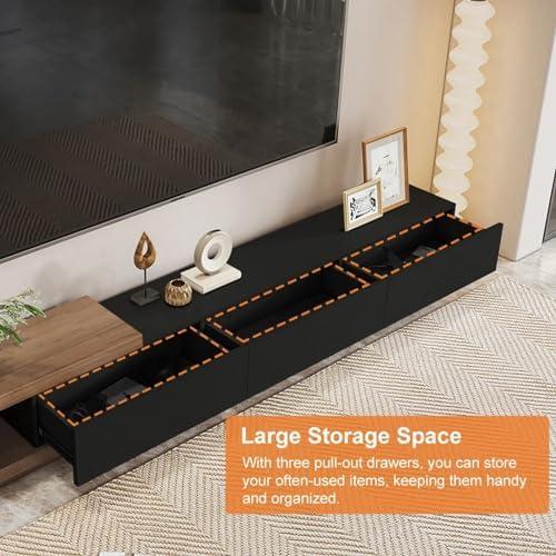 Moreover, the extendable design adds a level of versatility that suits various room layouts. This TV stand provides ample storage through its three large pull-out drawers and an extendable shelf, enabling us to neatly organize all our media devices and accessories. Its sleek, minimalist design integrates seamlessly into any décor, making it a perfect fit for modern living spaces. To truly appreciate the balance of durability and function, we invite you to explore this exceptional piece for your home. Discover More