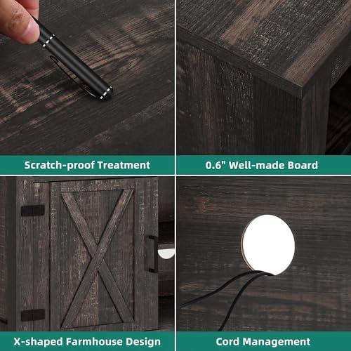 | Stylish Design: The dark rustic oak finish and barn door accents perfectly fit our farmhouse aesthetic. | Assembly Required: Despite the clear instructions, putting it together took us about 1-2 hours, which may be daunting for some. |