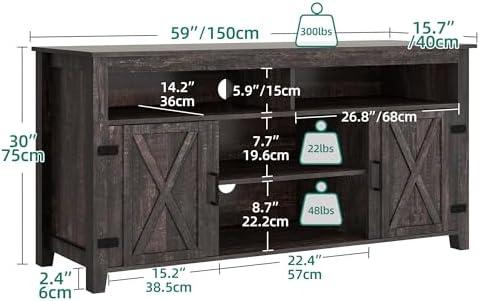 When it comes to maximizing our living space, choosing the right furniture is crucial, and this TV stand truly stands out in its versatility. With dimensions of 59 inches wide, 15.7 inches deep, and 30 inches high, it is perfectly designed to accommodate flat-screen televisions up to 65 inches while easily fitting into various room layouts. The rustic dark oak finish not only enhances its aesthetic appeal but also integrates seamlessly with existing décor, bringing a touch of farmhouse charm to our home. The stability and durability of this piece are remarkable, as it offers a loading capacity of 300 lbs, ensuring that our television setup remains secure and stylish.