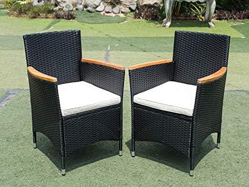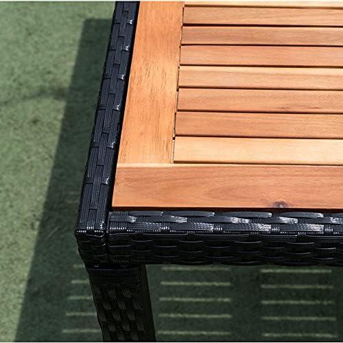 We are truly impressed by the design of this wicker furniture set, which perfectly blends elegance with functional comfort. Each piece boasts a modern aesthetic, featuring an acacia wood table top that not only looks beautiful but is also safer than traditional tempered glass. The understated charm of the black finish on the wicker complements a range of outdoor settings, from casual backyard gatherings to more intimate poolside dinners. The ergonomic design of the chairs, with their wide seats and high backrests, provides a sense of luxury and relaxation that encourages long hours of enjoyment.