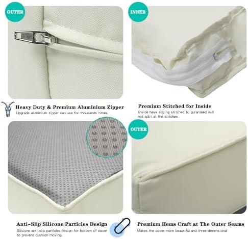 Not only is cream an adaptable choice for decor, but it also maintains a fresh and inviting look. The quality of these covers is as impressive as their color; made from a robust yarn-dyed polyester, they not only withstand wear and tear but also offer a splash-proof surface. Their attractive design features such as anti-slip silicone particles and heavy-duty aluminum zippers enhance usability without sacrificing style. We appreciate the ease of cleaning—spills can be easily wiped away, keeping the cushions looking pristine. the cream color serves not just as a practical choice for outdoor furniture but also as an understated statement of style and comfort.