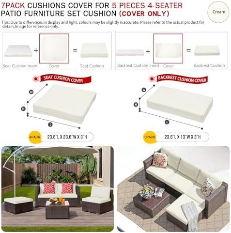 Upon receiving our new cushion covers, we were pleasantly surprised by the straightforward installation process. The set includes seven slipcovers designed specifically for both seat and back cushions, making it easy for us to transform our outdoor space without any hassle. With clear sizing for each piece—four seat covers measuring 23.6 inches by 23.6 inches and three backrest covers at 23.6 inches by 13 inches—we found it easy to fit them onto our existing cushions. The large zipper design allowed for quick application and removal, which is incredibly convenient when it comes time for cleaning or switching out covers for a fresh look.