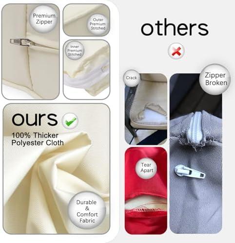 When considering our outdoor seating, we found these replacement covers to be a superb choice for both aesthetics and functionality. The water-resistant fabric provides an effective barrier against spills and light rain, though we recommend storing them during heavy downpours to ensure longevity. The UV resistance is a standout feature, as it significantly reduces fading over time, maintaining the vibrant cream color that complements our patio decor. Additionally, the splash-proof quality allows for easy cleanup of spills, making maintenance a breeze, whether it’s pet accidents or casual outdoor dining mishaps. The thoughtfully designed heavy-duty aluminum zipper promises durability, allowing easy installation and removal without the fear of wear and tear.