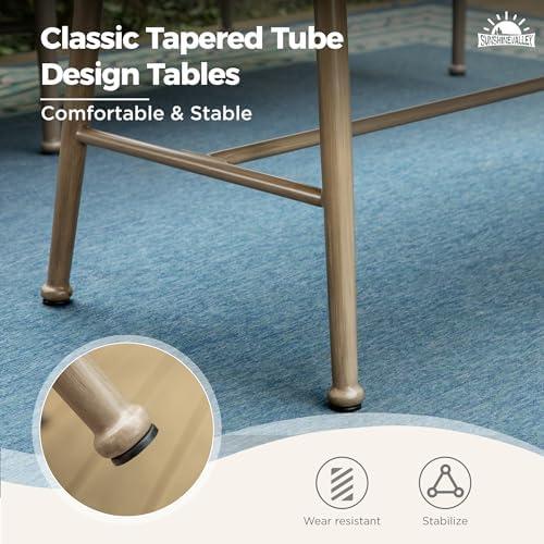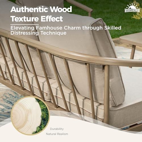 We genuinely appreciate how this patio furniture set makes outdoor living enjoyable without the hassle of constant upkeep. Thanks to the CUSHION PRO technology, the cushions exhibit extraordinary waterproof, oil-proof, and stain-resistant properties, allowing us to simply wipe down any dirt or spills with ease. This means we can focus on relaxing and entertaining guests instead of fretting over maintenance. The unique wood-like texture adds a touch of elegance to our patio, while the tapered tube design not only enhances aesthetic appeal but also provides the stability we need for long-lasting use.