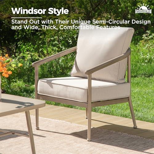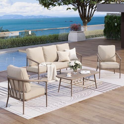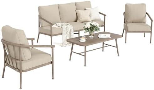 As we embark on our outdoor leisure pursuits, the right patio furniture becomes the centerpiece of our relaxation space. Recently, we had the pleasure of trying out the 4 Piece Metal Outdoor Patio Furniture Set, featuring a unique Windsor style that effortlessly combines comfort and elegance. This set includes a spacious 3-seater sofa, two cozy single sofas, and a charming coffee table, all adorned with luxuriously thick 5.75-inch cushions that beckon us to unwind. The craftsmanship showcases a delightful wood-like texture, maintaining a rustic charm while ensuring low maintenance. Whether gathered for a family barbecue or enjoying a peaceful evening under the stars, we’re excited to share our impressions of how this stylish, all-weather furniture transformed our outdoor experience. Join us as we delve deeper into its features and performance!