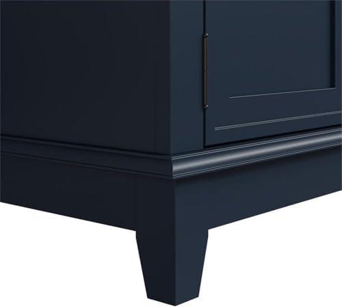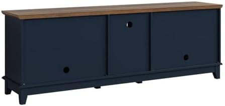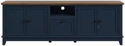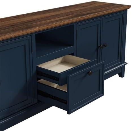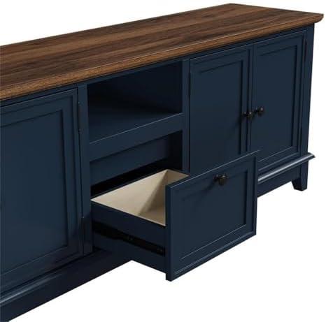 The striking navy blue finish combined with the wood-grain textured top makes this piece an eye-catching addition to any entertainment area. The vibrant blue cabinets stand out beautifully, offering a refreshing break from typical neutral tones, and lend a modern sophistication that seamlessly complements various decor styles. With dimensions of 72 inches wide, it provides a substantial presence while ensuring it remains functional and stylish. Its design embraces both aesthetics and practicality, making it a favorite for those who prioritize a chic look without sacrificing utility.