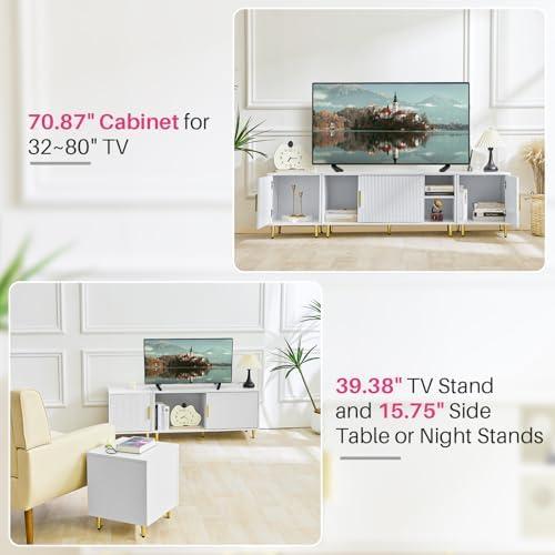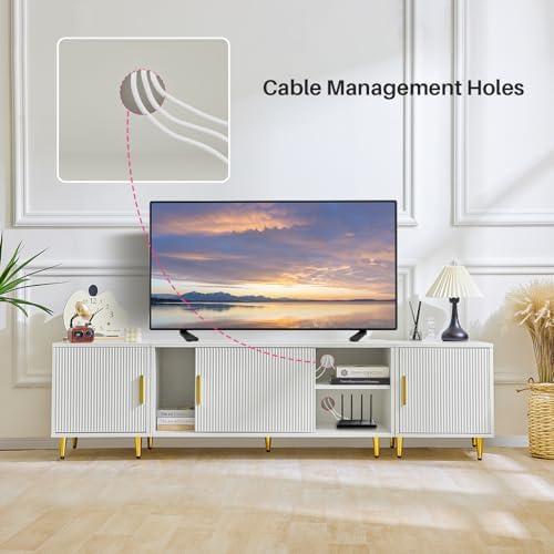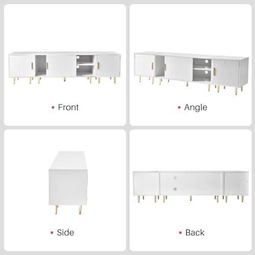 The elegantly designed gold legs serve as a perfect juxtaposition to the sleek white finish of the body, enhancing any decor style while maintaining a modern mid-century aesthetic. The thoughtful modular design allows us to mix and match the two movable storage cabinets, providing versatile storage solutions that go beyond simply holding our entertainment devices. We cherish the additional features like cable management grooves that keep our setup tidy and organized. It not only looks good but also functions seamlessly to elevate our living experience.
