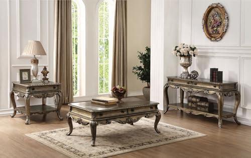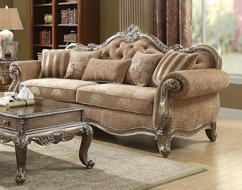 When it comes to finding furniture that seamlessly complements our interior style, we appreciate pieces that balance traditional charm with modern functionality. This living room ensemble excels in offering versatile aesthetics that can adapt to various décors. The beautiful arched scrolled-floral molding and antique finish not only add a classic touch but also create a warm and inviting atmosphere in our home. The intricate button tufting on the backrests combined with the nailhead trim elevates the overall elegance of the set, making it a stunning centerpiece for our living space.