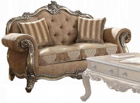 In our quest for the perfect living room set, we quickly realized that durability and elegance are not mutually exclusive. The meticulous craftsmanship featured in this collection stands out, showcasing arched scrolled-floral molding trim and nailhead accents that add a touch of sophistication. The poly-resin finish not only enhances the vintage oak allure but also ensures robustness, allowing us to confidently welcome guests without the fear of wear and tear. The button-tufted backrests and roll armrests offer an inviting touch, while the tight seat and back cushions provide exceptional comfort and support, making it ideal for both lounging and entertaining.