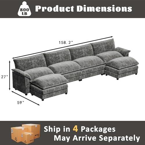 From a space efficiency perspective, the U-shaped design optimizes our living area by creating a cozy yet spacious atmosphere. Measuring 158.2 inches (L) x 29.5 inches (W) x 27 inches (H), this sleek piece fits well in various living spaces while maintaining a modern luxurious appearance. The easy assembly of the sectional, which arrives in three parts, further allows us to manage our space effectively without the hassle of complicated setups. We find that the stylish fabric both adds a touch of elegance and is soft to the touch, which complements our home decor beautifully. For anyone looking to improve their living space, the combination of function and aesthetics makes this sofa a valuable addition.