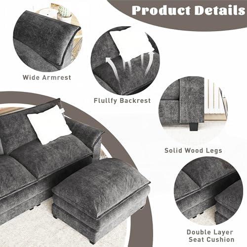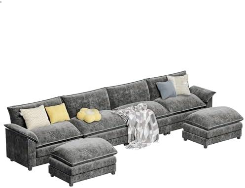 For those considering a stylish and versatile addition to their living space, this sectional couch offers a myriad of benefits. Soft, skin-friendly fabric not only enhances comfort but brings a touch of luxury that is perfect for both family gatherings and personal relaxation. The furniture’s strong and sturdy construction ensures durability, handling a weight capacity of 330 lbs per seat, while the modern aesthetic effortlessly complements various interior designs. The movable ottomans provide additional flexibility, making this an adaptable choice for any room arrangement.