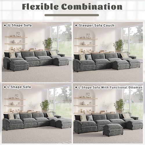 We appreciate the versatility offered by the modular setup of this sectional sofa. The flexible design allows us to customize the configuration to suit our living space, whether we want it to form a U-shape for family gatherings or adapt it for a cozier setting for movie nights. Each piece comes together effortlessly, ensuring a sturdy build while still allowing us the freedom to rearrange the sections as needed. The inclusion of two movable ottomans not only enhances the comfort of our experience but also provides extra seating options when entertaining guests, adding a layer of convenience to its functionality.