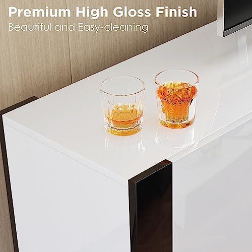 We love how this modern entertainment center accommodates our larger TV needs, supporting screens of up to 80 inches with ease. The sturdy U-shaped bracket design ensures stability, capable of holding a maximum weight of 250 lbs, making it a reliable choice for our living space. Enhanced by the sleek high gloss finish, it adds a touch of elegance to any room. Additionally, the ample storage options, featuring two enclosed spaces with adjustable shelves, allow us to organize our media devices and accessories efficiently without sacrificing style.