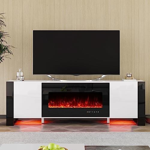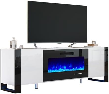 In our search for the perfect blend of practicality and style, we found this TV console to be an exceptional choice. The high gloss finish gives it a modern aesthetic that elevates any living room decor. Designed to accommodate TVs up to 80 inches, the sturdy U-shaped legs provide reliable support while maximizing stability. Beyond just a stylish centerpiece, it features a 36-inch electric fireplace that not only enhances the ambiance with its realistic flame effects and crystal stones but also provides warmth with an energy-efficient heating system. We appreciate the eight flame colors and five brightness levels to personalize our space as needed.