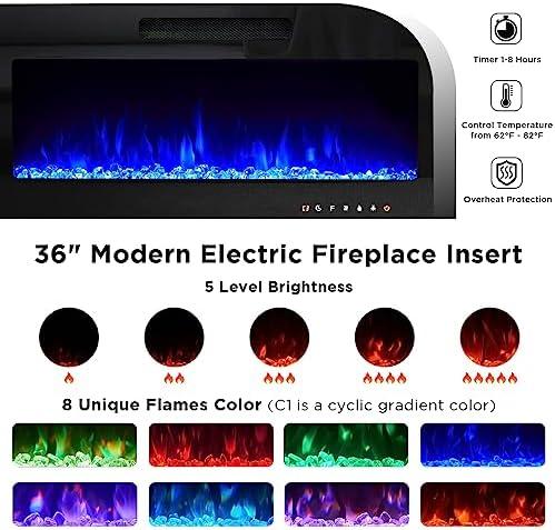Embracing warmth in our living space has never been easier with this elegant fireplace feature. The 36-inch electric fireplace not only serves as a rich focal point but also offers a range of functionalities that elevate our home experience. Featuring realistic crystal stones, it presents eight flame colors and five brightness levels, allowing us to customize the ambiance to our liking. It’s impressive how quickly it can heat up a room, providing comfort without dry air, thanks to its dual power options that can efficiently generate up to 4800 BTUs. On cooler days or cozy nights in, this fireplace transforms our space into a warm sanctuary, all while also functioning beautifully as a piece of decor even when not in use.