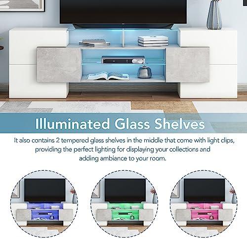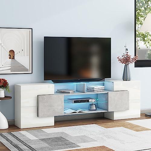 We recently had the opportunity to test out the White 85 Inch TV Stand, a modern marvel that combines functionality with style. Designed specifically for large entertainment setups, this TV stand boasts an impressive array of features, including 6000 adjustable color LED lights that can be tailored to fit any mood or occasion. With generous storage options that include both wooden and glass shelves, it effortlessly accommodates our multimedia devices while keeping our living space organized. Crafted from durable materials, this stand promises both sturdiness and elegance, making it a perfect addition to any contemporary home. Join us as we delve deeper into our experience with this versatile piece of furniture, exploring its design, installation process, and overall performance.