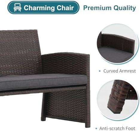 | Stylish Design: The classic brown wicker and dark grey cushions create a timeless look that complements any outdoor décor. | Size Limitations: Ideal for small spaces, but might not accommodate larger gatherings comfortably. |