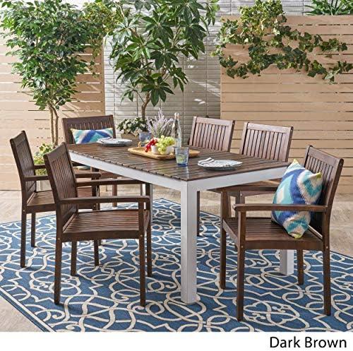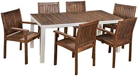 As the sun begins to set and a gentle breeze rustles through the trees, we find ourselves yearning for meals al fresco that feel elevated rather than ordinary. Enter the Christopher Knight Home Noe Outdoor 7-Piece Acacia Wood Dining Set in Dark Brown and White, a remarkable combination of style and functionality that promises to transform our patio dining experience into something truly special. Crafted with care from durable acacia wood, this set not only accommodates our entire family but also adds a touch of elegance to our outdoor space. With its ample surface area perfect for elaborate dinners or casual breakfasts and an easy-to-clean finish, this dining set is designed to make our outdoor gatherings anything but mundane. Join us as we delve into our first-hand experience with this striking set and explore the potential it brings to our dining adventures under the open sky.