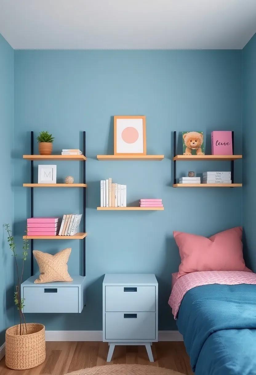 Transforming unused vertical space can breathe new life into a charming girls’ room. Corner shelves are an excellent way to utilize odd nooks, offering a perfect spot for displaying books, toys, or even potted plants.Opt for tiered shelving units that draw the eye upward, or intertwine floating shelves with whimsical decorative elements like fairy lights or photographs.These not only provide storage but also create a captivating focal point that reflects personality.