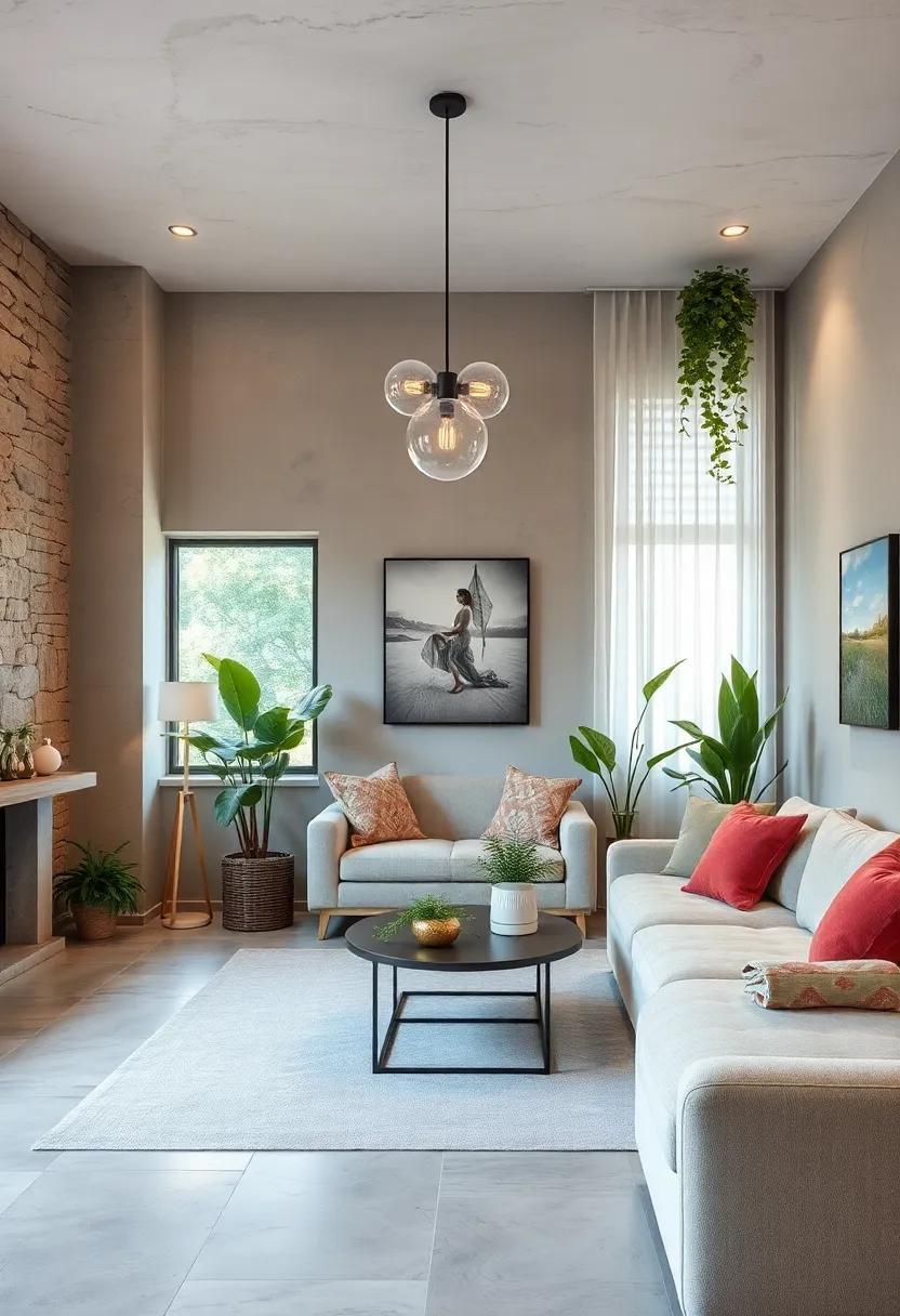 - Lighting: Use a combination of modern pendant lights and vintage floor lamps.