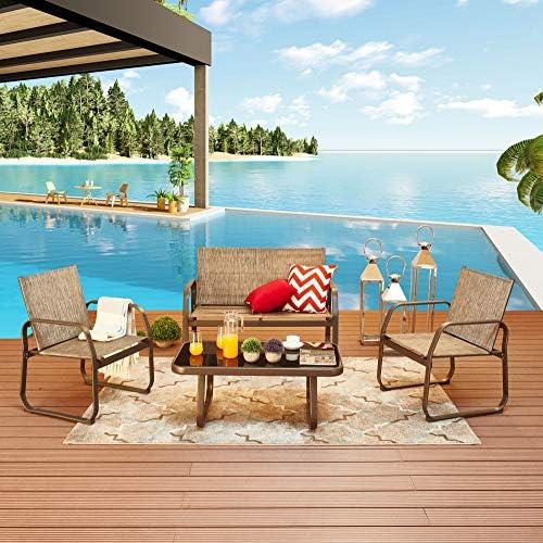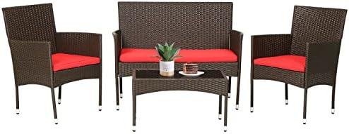 While this furniture set boasts many advantages, such as ease of assembly and a modern aesthetic, there are a few considerations to keep in mind. Although it is constructed from synthetic rattan, which generally offers better durability, some users may find the lightweight nature of the material less sturdy compared to traditional options. Additionally, though the cushions are waterproof, extended exposure to the elements might affect their longevity. this set is perfect for outdoor gatherings and provides a stylish and functional addition to any patio or backyard space.