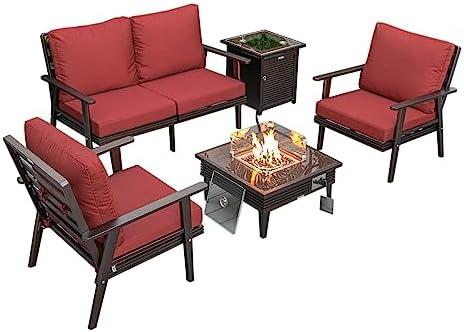 Modern Aluminum 5-Piece Patio Set with Fire Pit and Side Table