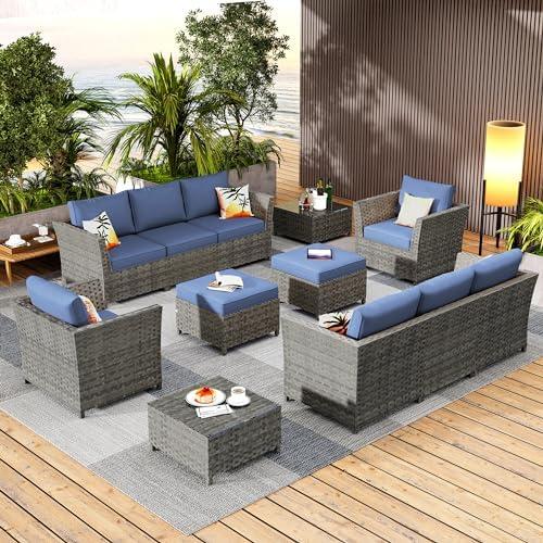 Stylish 12-Piece Patio Sofa Set with Ottomans and Coffee Table