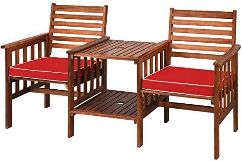 Pros of this seating set include its robust construction, comfortable cushions that are removable and washable, and a versatile design that fits well in any outdoor setting, such as gardens or patios. The easy assembly process is a significant advantage for quick setups. However, potential cons may include the need for routine maintenance to keep the wood in good condition over time, and the limitations on color options, as red may not suit everyone’s taste. this is an ideal choice for enhancing your outdoor relaxation space.