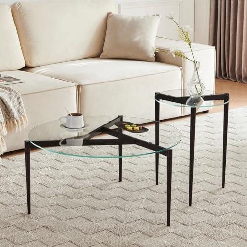 However, there are pros and cons to consider. On the positive side, the easy assembly process and high-quality materials ensure that the tables are not only durable but also visually appealing. The clear glass surface is easy to clean and maintain, adding to their practicality. On the downside, the transparent top may be prone to showing fingerprints or scratches, requiring regular upkeep. Additionally, while the design is modern, it may not suit more traditional interior styles, potentially limiting its appeal. this coffee table set is a stylish choice for contemporary spaces, offering an inviting atmosphere with its sleek design.