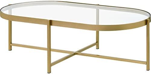 Benjara Coffee Table with Oblong Glass Top and Metal Frame, Gold
