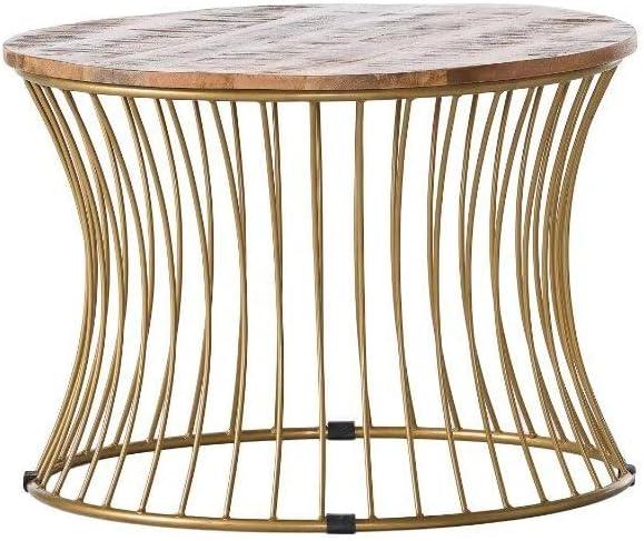 Bohemian Glam Round Coffee Table with Gold Iron and Wood, 25.2*18.5*25.2 inch