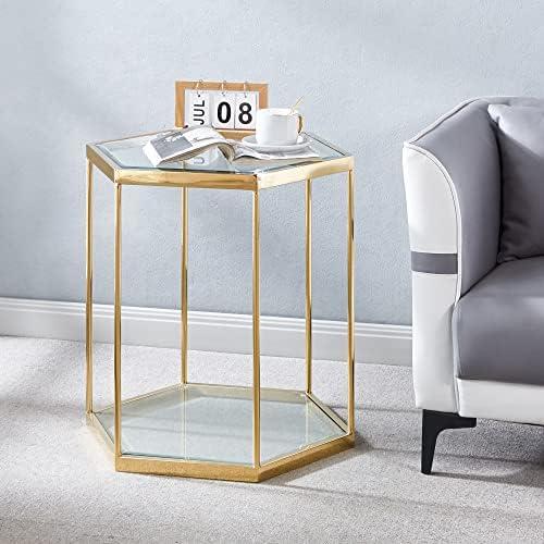 This side table features a sleek and modern design that seamlessly complements various decor styles. The two-tiered construction, made from high-quality tempered glass, provides ample storage for items such as books, remotes, and decorative pieces, keeping your living space tidy and organized. Its gold and silver metallic finish adds a touch of elegance, making it a striking addition to any room, from the living area to the office or even a balcony. With dimensions of 22.8″L x 19.7″W x 23.6″H, it offers a perfect balance of functionality and aesthetic appeal.
