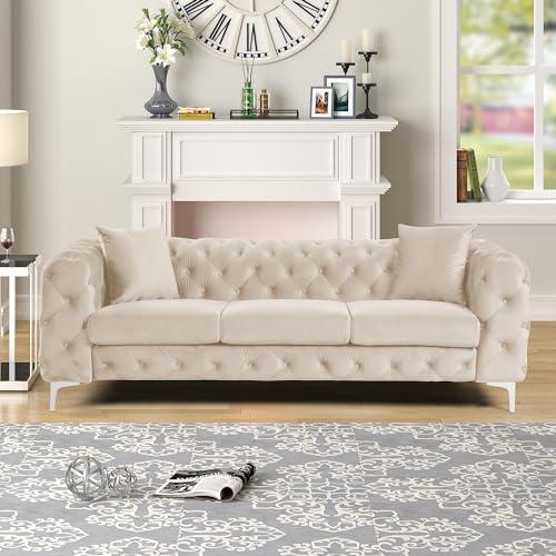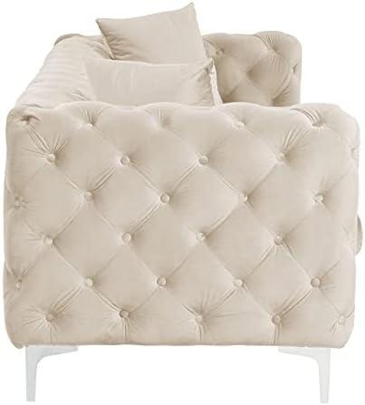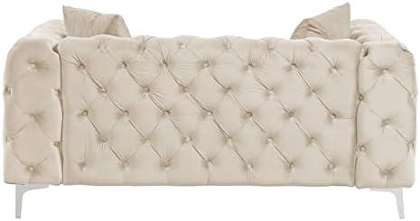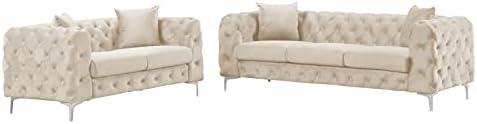 We have found this elegant furniture set to be wonderfully adaptable, seamlessly blending into various living spaces. Whether we’re furnishing our cozy living room, modern bedroom, or a stylish office, this versatile design captivates with its mid-century modern aesthetic that includes deep button tufting and sleek metal legs. The plush velvet upholstery adds a touch of sophistication, making it a suitable choice for both casual hangouts and formal gatherings. Its neutral beige color ensures that it complements other decor elements effortlessly, while the minimalist structure keeps the overall look chic and uncluttered.
