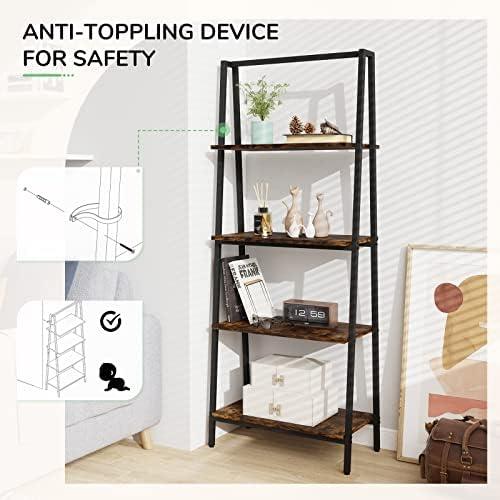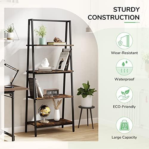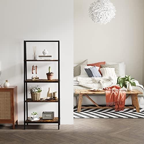 Transforming our living environment has never been more effortless with the addition of this striking 4-tier bookshelf. Its streamlined, classic design enriched with retro hues seamlessly elevates the aesthetic of any room. Composed of a beautiful blend of matte black and rustic brown, it embodies an industrial chic that catches the eye while maintaining functional elegance. We have arranged various items on its open shelves—from green plants to our favorite books and cherished decorations, all beautifully displayed against a backdrop that radiates warmth and character. The added stability from the uniquely designed metal framework ensures our collectibles remain safe and secure.