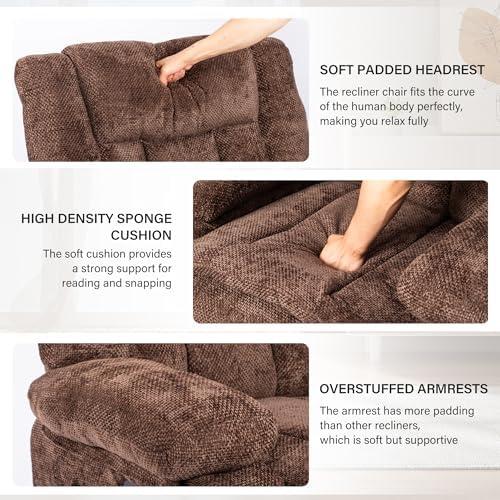 As we delve into the aesthetics of this recliner chair, it becomes apparent that comfort begins with its thoughtful design elements. The high-density sponge padding encompasses the entire chair, ensuring we feel cradled in softness. The fabric is not only breathable but also adds a touch of elegance to any living space, with its chic brown color harmonizing well with a range of decor styles. The overstuffed armrests provide an additional layer of support, allowing us to sink into relaxation while also aiding in posture. Coupled with a retractable footrest—designed for durability—it invites us to elevate our feet effortlessly, creating a harmonious balance between functionality and luxurious comfort.