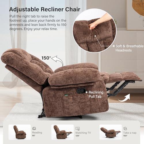 When considering a new addition to our living space, comfort and functionality are paramount. This reclining chair offers an impressive combination of high-density sponge padding and breathable fabric that caters to both relaxation and practical use. The integrated massage and lumbar heating functions provide a soothing experience, perfect after long workdays. With adjustable reclining angles from 90° to 150°, we can easily customize our seating position for various activities, whether we’re watching TV, reading, or taking a quick nap. The overstuffed armrests and retractable footrest enhance our sitting experience, making it feel like a personal retreat within our home.
