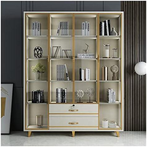 Stylish Floor-to-Ceiling Bookshelf with Glass Doors in Elegant Gold
