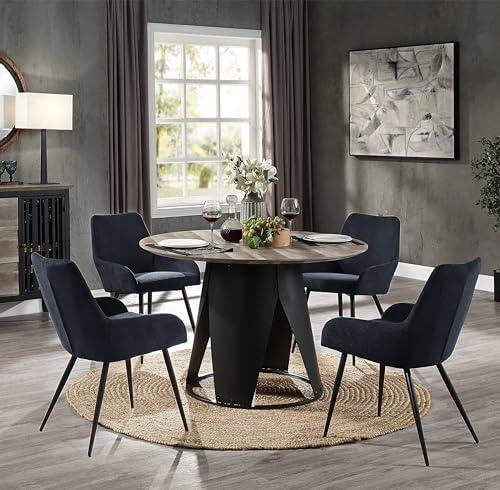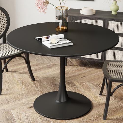 This modern round dining table features a high-quality MDF tabletop paired with a robust metal pedestal base. Measuring 42.1 inches in diameter and standing 28.7 inches tall, it offers ample space for dining comfortably with 4 to 6 people. The table’s thickened 0.71-inch surface is not only visually appealing but also reflects durability and stability, making it an excellent choice for various settings, including kitchens, living rooms, cafes, and small dining areas. The unique “T” shaped base adds an aesthetic flair while ensuring stability, capable of supporting up to 250 lbs.