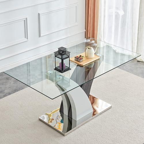 Elegant Dining Table with Tempered Glass Top and Unique Legs