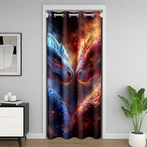 This striking doorway curtain features a vibrant design, showcasing a red and blue galaxy backdrop intertwined with an ice fire dragon motif. Made from 100% polyester microfiber, it offers a soft touch while providing 30%-50% room darkening capabilities, making it an excellent choice for spaces needing a balance of light control and decorative flair. The curtain measures 34″x80″, making it suitable for a variety of openings such as front doors, kitchens, or bedroom entrances. The high-definition print adds a unique personality to your space, sure to impress both children and adults alike.
