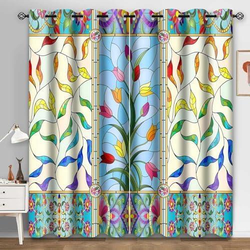 Stained Glass Windows Curtains with Floral Design for Home Decor